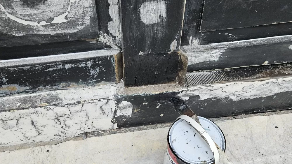 Votre professionnel a aussi travaillé sur la peinture des volets, des fenêtres et du balcon à l'étage au dessus du commerce.